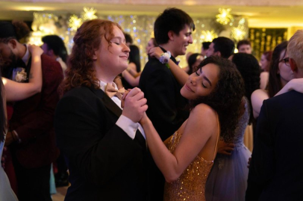 1 of 5 | Julia Lester (L) and Antonia Gentry dance at prom. Photo courtesy of Disney