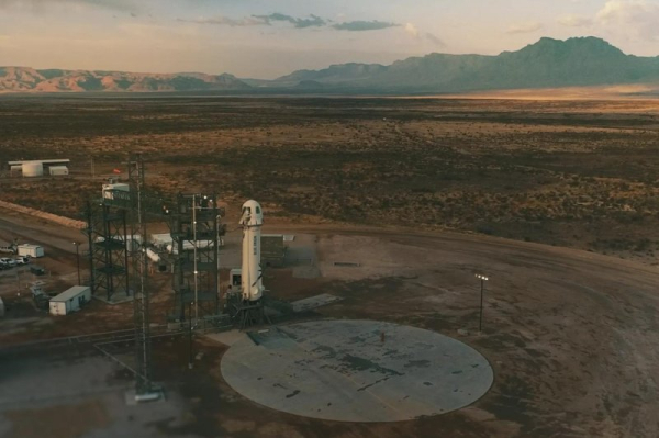 Blue Origin scrubbed its first flight since last year’s uncrewed booster mishap. Monday’s flight in West Texas was called off due to an unspecified “ground system issue.” The flight has been rescheduled for Tuesday. Photo courtesy of Blue Origin