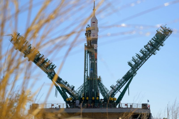 The rocket was expected to leave the Baikonur Cosmodrome in Kazakhstan and head to the International Space Station with Dyson and two cosmonauts aboard. The flight was scrubbed 20 seconds before liftoff. Advertisement