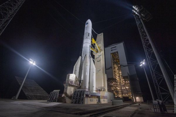 The European Space Agency’s new Ariane 6 rocket undergoing a full-scale wet rehearsal on October 24 on the launch pad at Europe’s Spaceport in Kourou, French Guiana. Photo courtesy European Space Agency