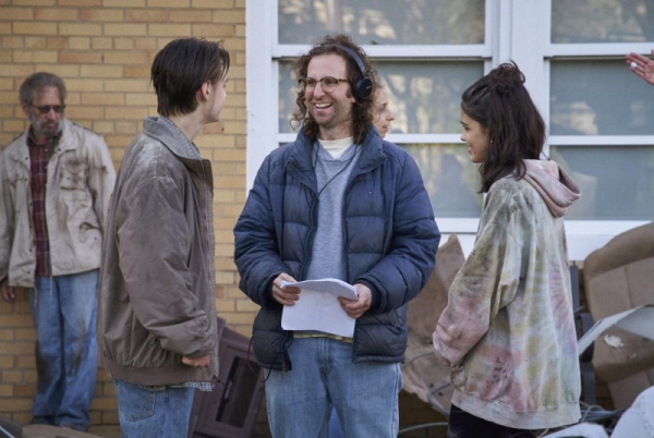 1 of 5 | Kyle Mooney (C) directs Jaeden Martell and Rachel Zegler in “Y2K,” in theaters Dec. 6. Photo courtesy of A24