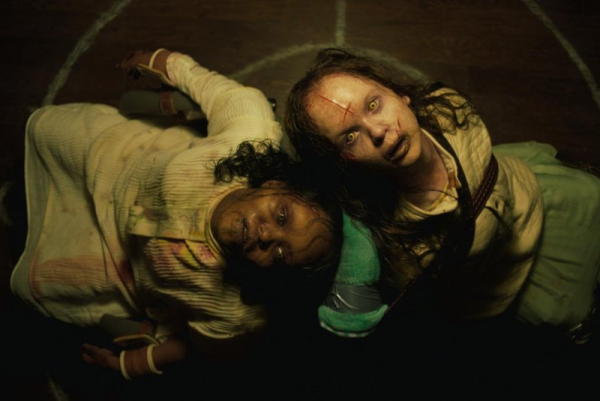 1 of 5 | Lidya Jewett (L) and Olivia O’Neill are possessed in “The Exorcist: Believer.” Photo courtesy of Universal Pictures