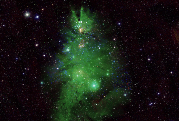 On Tuesday, NASA released an image of NGC 2264, also known as the “Christmas Tree Cluster,” a group of young stars located around 2,500 light-years away from Earth. The image was captured by the Chandra X-ray Observatory, and the green nebula surrounding the stars resembled a festive Christmas tree.