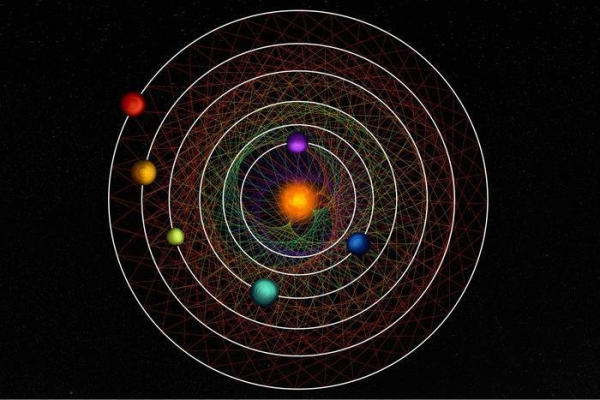 This is an artist’s illustration of the six newly discovered planets circling their star in resonance. Image by Roger Thibaut/NCCR PlanetS