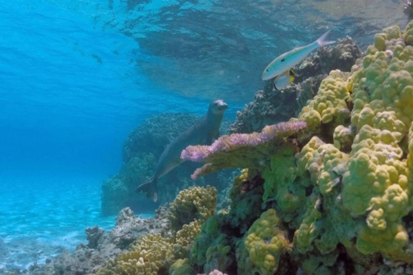 The Papahānaumokuākea area is home to multiple endangered species, including the Hawaiian monk seal and green sea turtles.