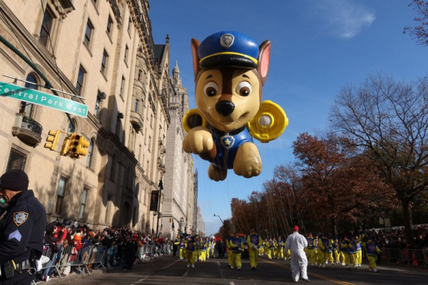 The Paw Patrol balloon moves down the parade route at the 95th Macy’s Thanksgiving Day Parade in New York City in 2021. File Photo by John Angelillo/UPI | License Photo