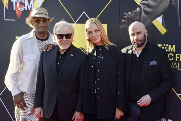 Left to right, Samuel L. Jackson, Harvey Keitel, Uma Thurman and John Travolta attend the TCM Classic Film Festival opening night and 30th anniversary presentation of “Pulp Fiction” at the TCL Chinese Theatre in the Hollywood section of Los Angeles on April 18. File Photo by Jim Ruymen/UPI | License Photo