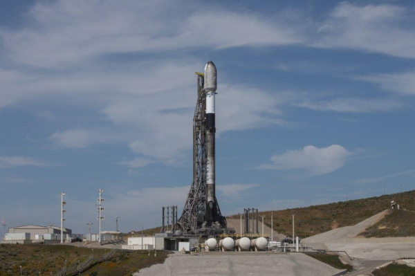 SpaceX on Tuesday launched a Falcon 9 rocket topped with another batch of 20 Starlink satellites from the Vandenberg Space Force Base in California. Pictured here is the Flacon 9 rocket shortly before liftoff. Photo courtesy of SpaceX/X
